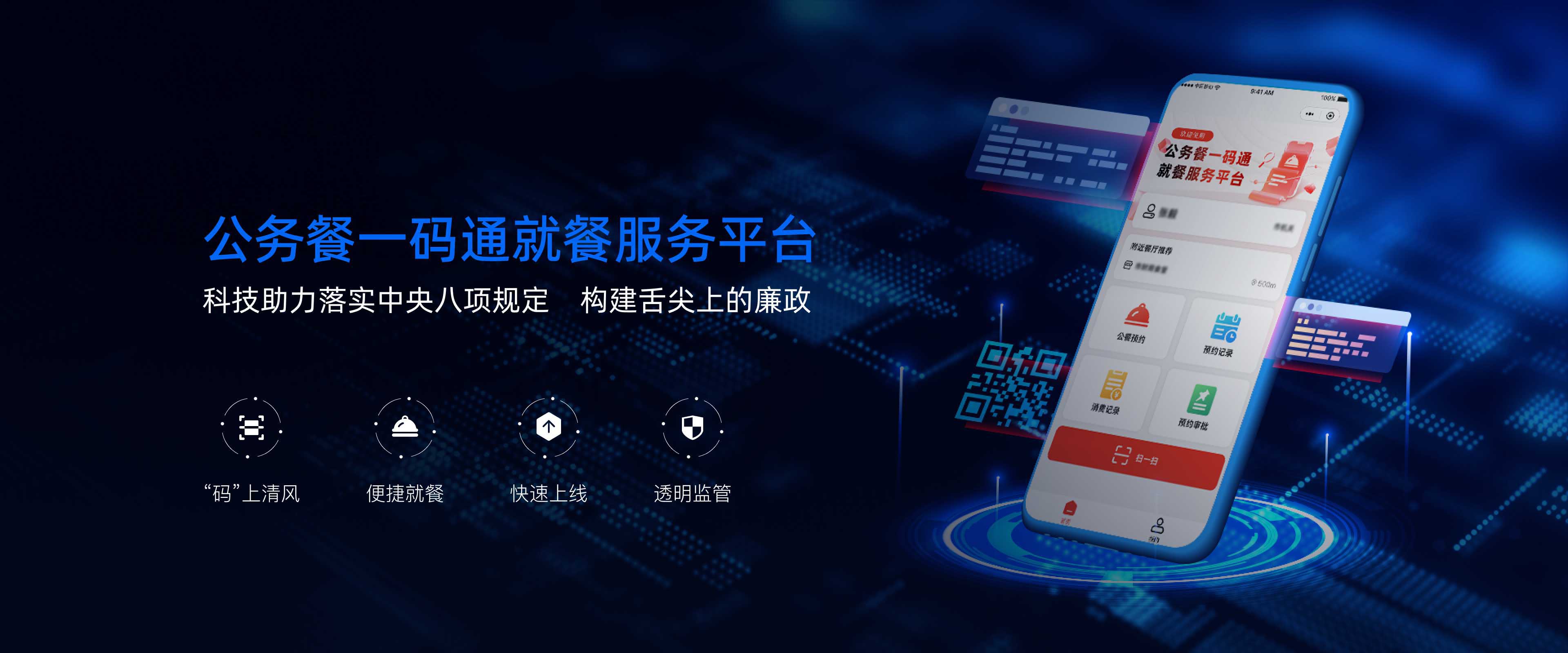 为加强和规范公务接待管理,公餐推出公务餐一码通就餐服务平台,解决公务人员公出便捷规范就餐,公职人员在区域范围内开展公务活动时,可通过微信小程序提前进行注册和预约公务用餐,审批通过后系统自动生成就餐二维码,实现无接待无陪同,快速就餐。公务餐一码通的使用简化了接待流程,规范了公务接待管理,推动廉政建设与基层减负。